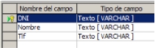 Cada fila de la zona de trabajo de esta ventana representará uno de estos campos. En la parte inferior de la pantalla podemos indicar el tamaño (longitud) que queremos para cada campo. Al final deberíamos obtener algo parecido a: