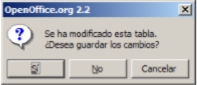 Al salir del diseño de la tabla (por ejemplo, pulsando la X de la esquina superior izquierda de la ventana), Base se da cuenta de que hemos modificado el diseño de la tabla y nos pide confirmación para guardar los cambios (deberemos decirle que “Sí”):
