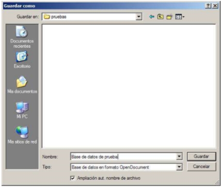 A continuación nos pregunta en qué carpeta queremos guardar nuestra base de datos (yo crearé una específica para ella) y qué nombre le queremos darle yo la llamaré “Base de datos de prueba”):
