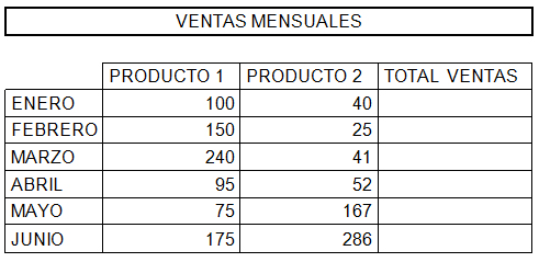 - Calcula los totales para la columna TOTAL VENTAS.