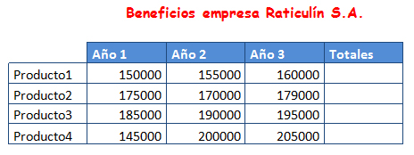 Categorías Ejercicios Excel, Excel