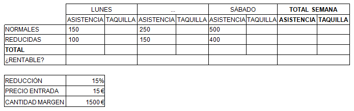 - Si el día ha sido rentable. Consideraremos un día rentable aquel que en taquilla se haya superado la cantidad que se da como margen.