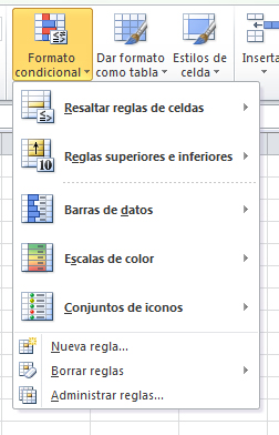 También podemos crear nuevas reglas, editarlas, borrarlas y que nos las muestre con el administrador de reglas de formato condicional.