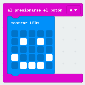 4. Haz clic en los cuadros correspondientes para dibujar una cara feliz en el bloque «mostrar LEDs».