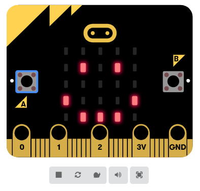 5. En la parte izquierda del editor tienes el simulador, para probar el funcionamiento de tu programa. Haz clic sobre el botón A. ¿Funciona?