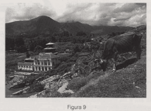 identificarla en él; sin embargo, para el autor de la fotografía, seguramente, fue sólo un elemento que sirvió para elaborar la composición de un paisaje, añadido en primer término ante el edificio y el fondo montañoso.
