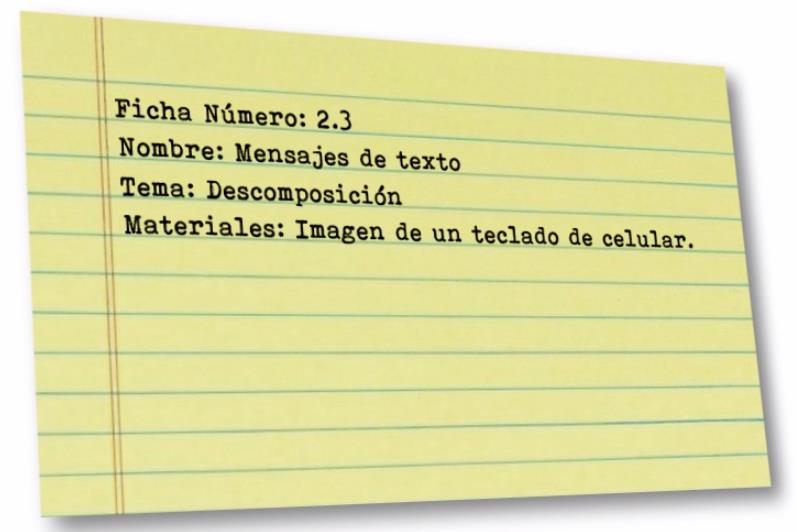 Como ejemplos , vimos juegos como el de los palitos, el cual nos permitió además discutir sobre estrategias de resolución de problemas en general. También hicimos actividades como la de adivinar el personaje elegido por una persona, cargamos en forma eficiente varios celulares y mandamos mensajes. En todos ellos, aplicamos descomposición.