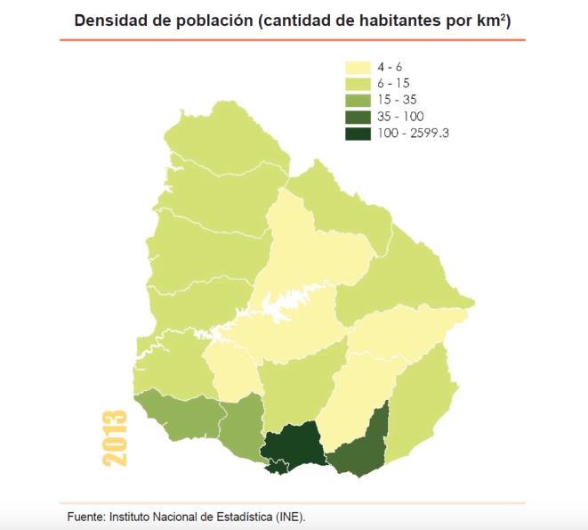 En geografía, miremos este mapa de Uruguay donde se incluye la información de densidad de población:
