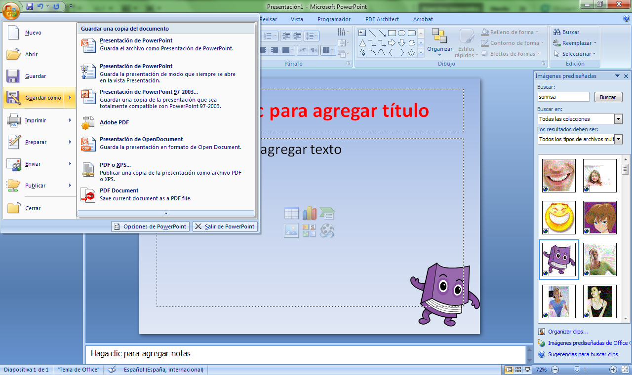 Después de diseñar una presentación desde el Patrón de diapositivas nos puede resultar interesante guardar esa plantilla para poderla usar en presentaciones futuras.