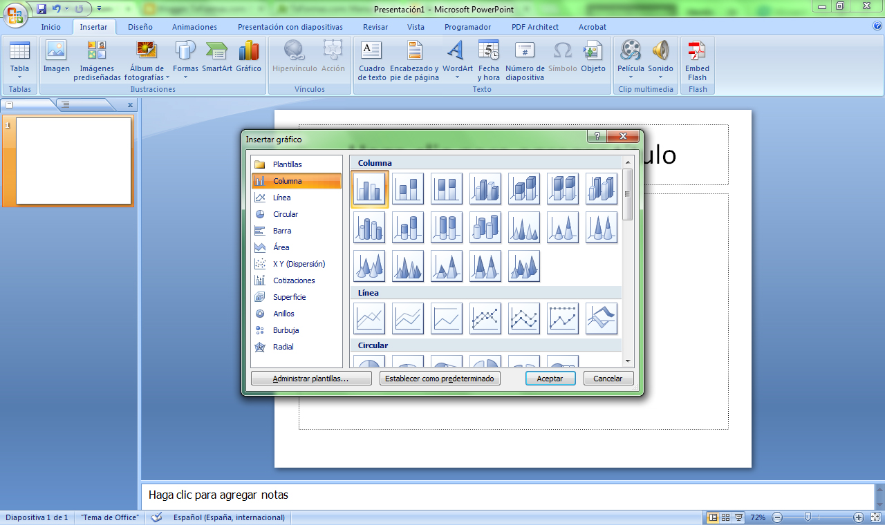 - Tipo de gráfico: Cambiar tipo de gráfico y Guardar como plantilla.