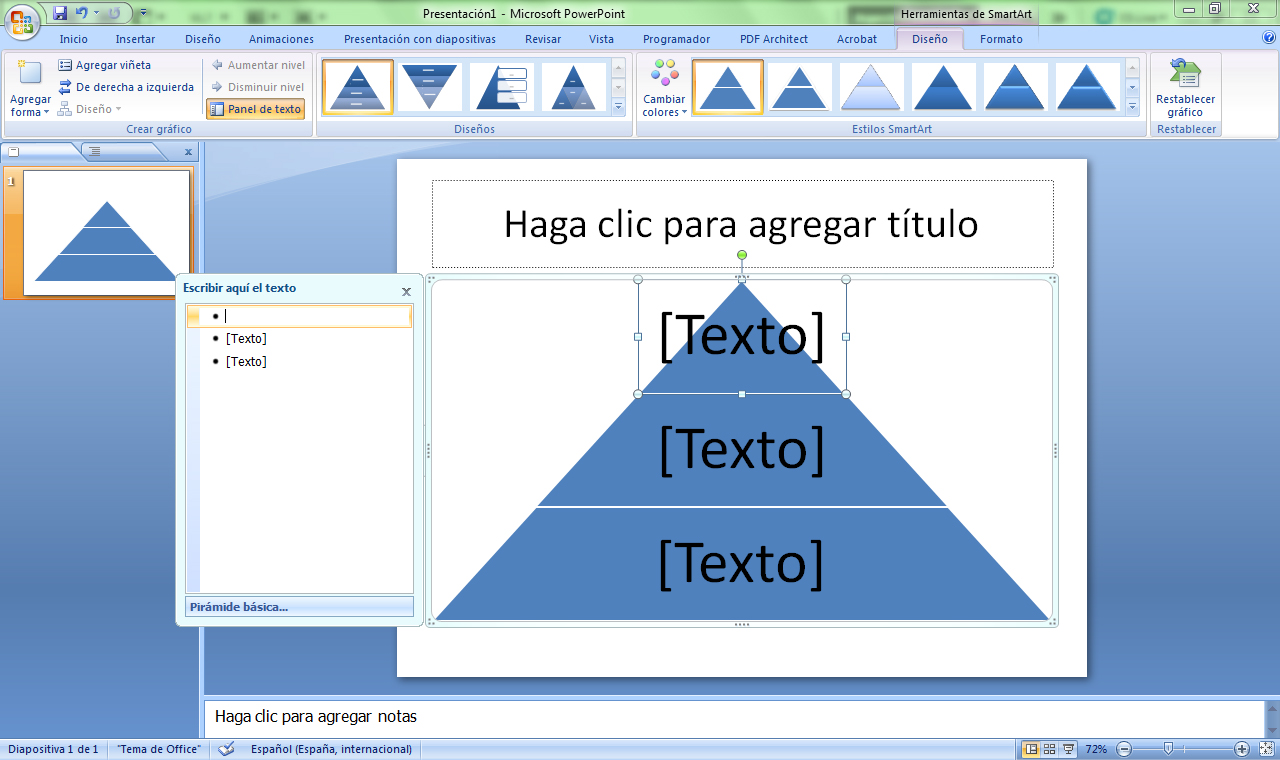 - Diseños: Permite elegir un gráfico SmartArt distinto.
