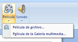 Como ocurría en el caso de las imágenes podemos insertar películas desde archivo o películas de la galería multimedia. Ambas opciones están accesibles desde Insertar/Películas.