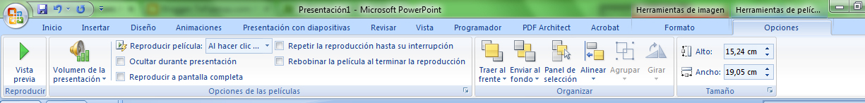 Además aparecerá una nueva ficha en la cinta de opciones: Herramientas de película