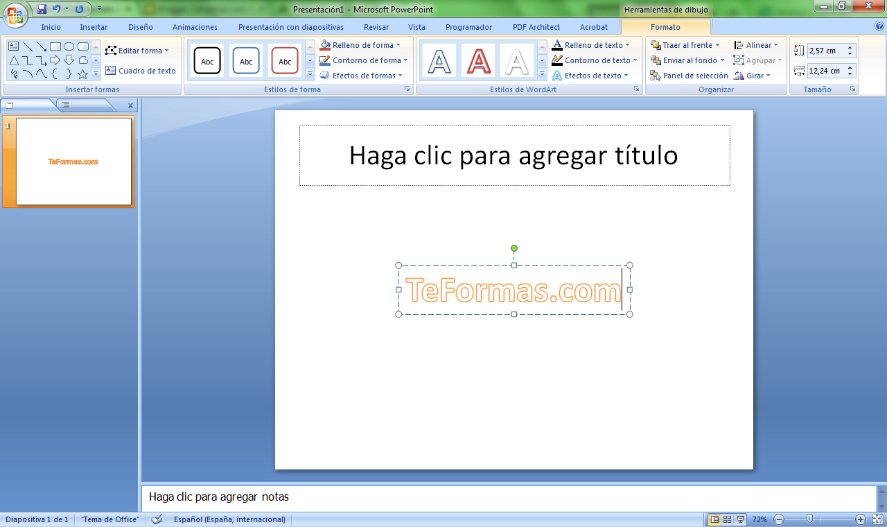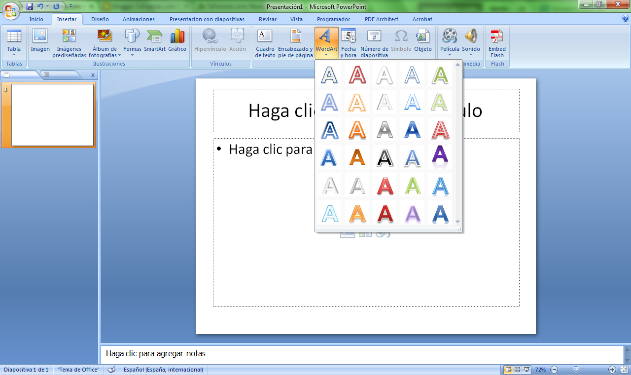 Elegimos el estilo que queramos y al pulsar sobre él aparecerá un cuadro de texto donde escribiremos lo que deseamos.
